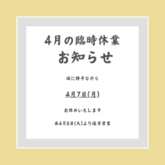※大変恐縮ですが、子供行事等でお休み頂く場合はHPにて前月末までにお知らせ致します。