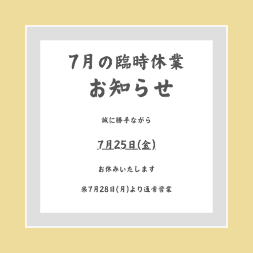 7月の臨時休業日について