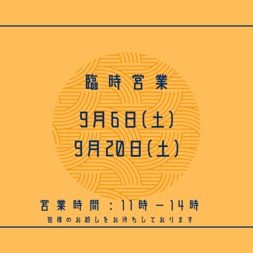 9月6日(土)・20日(土)臨時営業します。