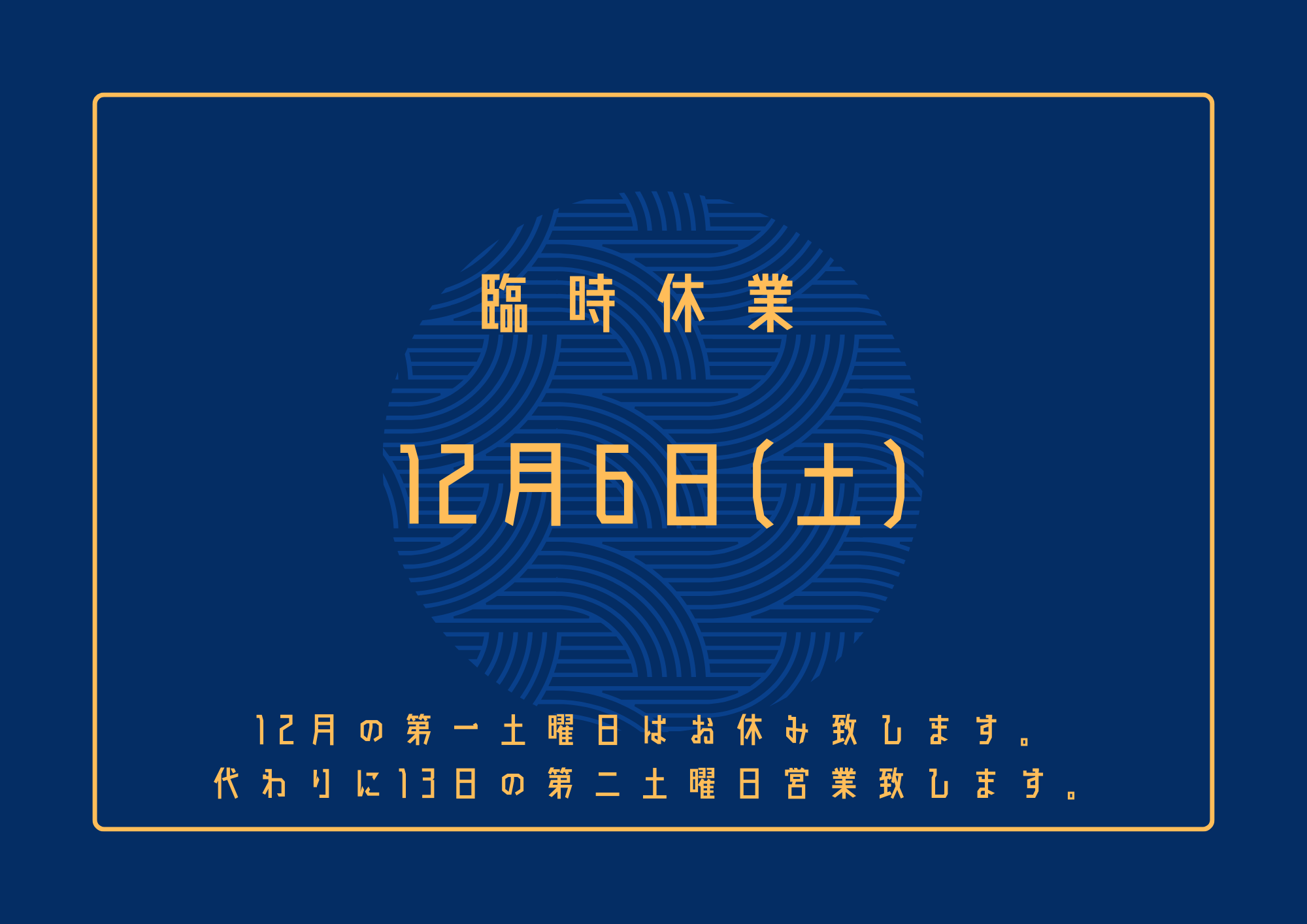 12月は都合により【12月6日(土)臨時休業】させて頂きます。