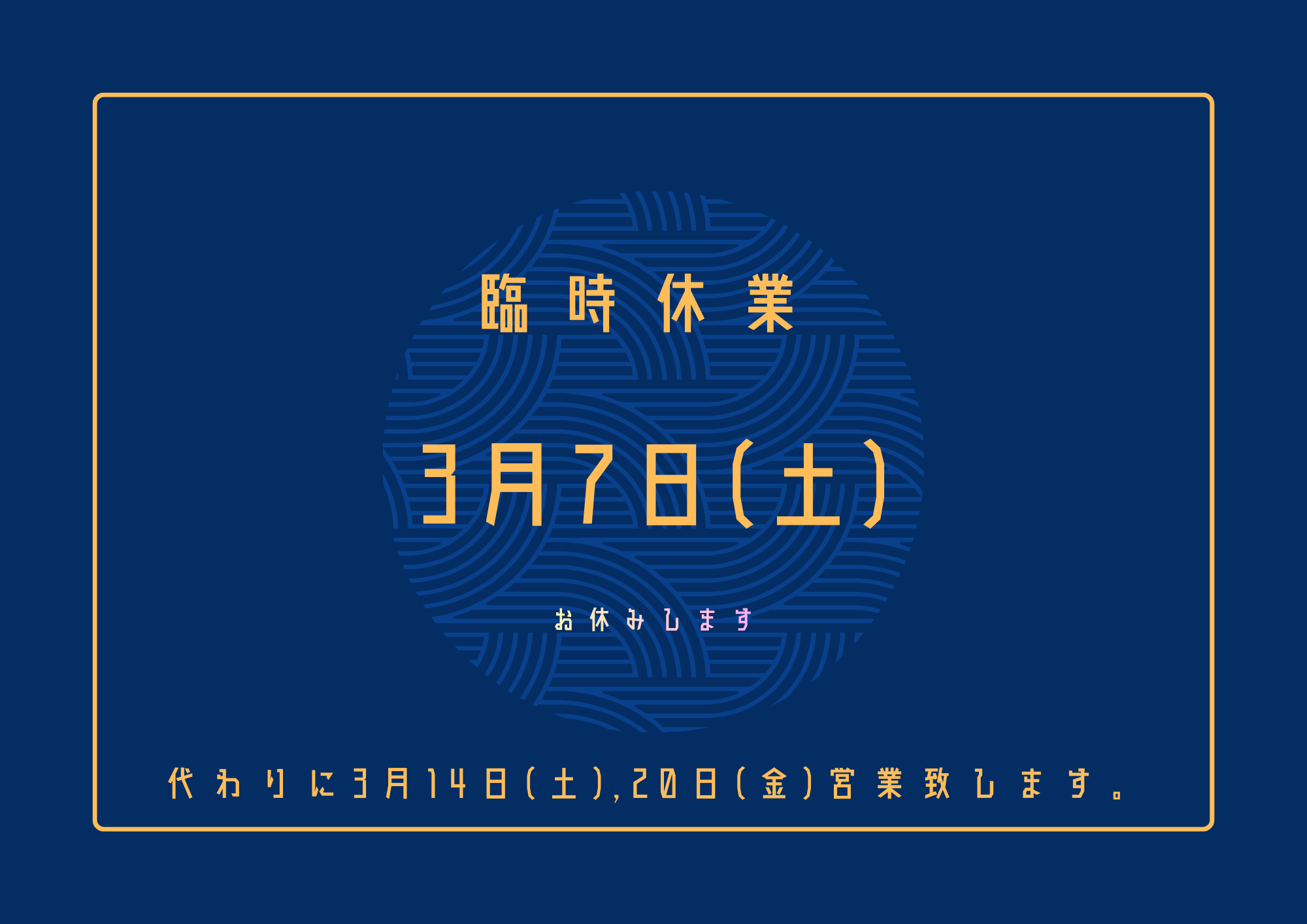 【3月7日(土)】は、臨時休業日とさせて頂きます。