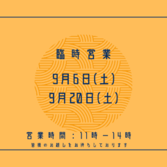 ★代わりに9月20日(土)臨時営業致します。臨時営業の土曜日すいております。